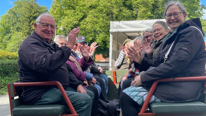 Fra Sværdborg Kirke er der hestevognskørsel ind over land for dem, der ikke magter at gå så langt – tilmelding til Birthe på SMS tlf.nr. 23449609 senest onsdag den 6. maj.